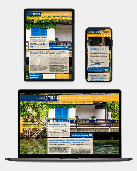 Die Ferienhäuser Leitner ist ein Schwesterhotel des Sporthotel ROYAL X und ist somit ein Teil des Projektes „Urlaub am Millstätter See“. Die Umsetzung der Website ist daher an die Grundkonzeption der Schwesterhotels angepasst. Es wurde dabei besonders darauf geachten, dass die Website inhaltlich und bildlich an die Wünsche und Bedürfnisse der individuell definierten Zielgruppe des Hauses angepasst wird.