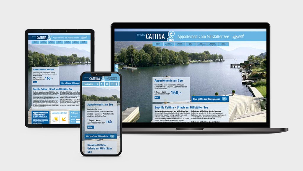 Die Seevilla Cattina ist ein Schwesterhotel des Sporthotel ROYAL X und ist somit ein Teil des Projektes „Urlaub am Millstätter See“. Die Umsetzung der Website ist daher an die Grundkonzeption der Schwesterhotels angepasst. Es wurde dabei besonders darauf geachten, dass die Website inhaltlich und bildlich an die Wünsche und Bedürfnisse der individuell definierten Zielgruppe des Hauses angepasst wird.